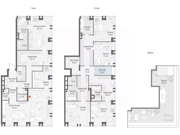 Продаётся 5 - комнатная квартира в готовом доме (Корпус 8), общей площадью 300.4 кв.м., на 19 этаже. О жилом комлексе Жилой квартал Lucky - это переосмысление и регенерация общественно-делового кластера площадью более 4.5 гектаров в центре Москвы. О застройщике Девелопер проекта Vesper специализируется в премиальном сегменте клубной жилой недвижимости. Портфель компании включает 22 проекта в Москве и странах Европы. Актуальные архитектурные проекты, индивидуальный дизайн, передовые технологии, качественные материалы и лучшие мировые практики воплощены в каждом доме компании. Расположение и транспортная доступность Квартал расположен на пересечении улиц 2-ая Звенигородская и Костикова, в 200 метрах от метро "Улица 1905 года". В непосредственной близости от парков, Москвы- реки, Сити и Садового кольца формируется идеальная среда для семейного проживания в мегаполисе. Архитектура Визуально квартал разделен на две части: верхний город с новыми высотными жилыми домами и нижний город с общественным пространством для инфраструктуры, где располагается новый социокультурный кластер площадью около 10 000 кв. м. Верхний город состоит из восьми жилых домов: семь 21-этажных башен и одно здание высотой 15 этажей. В восьми новых домах расположены 618 квартир. На каждом этаже 3-4 квартиры, большая часть которых имеет ориентацию на 2-3 стороны света. Из панорамных окон открываются виды на набережную Москва-реки, Сити и близлежащие парки. Знаковая архитектура, продуманные планировочные решения, изысканная отделка, инновационные инженерные решения воплощены в квартале Lucky. Инфраструктура В квартале представлена инфраструктура для всей семьи: парки и скверы, билингвальный детский сад La Berezka, собственный 600 м. игровой парк для детей, фитнес с подогреваемым бассейном на крыше, рестораны, кафе и магазины органических продуктов. В шаговой доступности от квартала расположены лучшие рейтинговые школы.