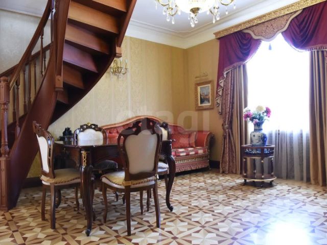 Площадь квартиры 155 кв.м, потолки 3,2 м, перепланировка выполнена в соответствии с законом (все документы имеются). На первом уровне расположены: прихожая, санузел и три комнаты (просторная кухня-гостиная, спальня, кабинет). Санузел оборудован итальянской сантехникой, английской душевой кабиной, элегантной мраморной ванной; пол и стены отделаны керамогранитом Kerama Marazzi; выполнен авторский витраж с подсветкой. Из кухни-гостиной на второй этаж ведет красивая деревянная лестница, которая является украшением квартиры. На втором уровне расположены: просторная комната отдыха с электрокамином, две изолированные спальни со встроенной мебелью, санузел, встроенная система хранения.