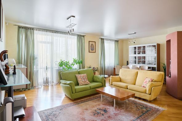 Великолепная меблированная квартира в жилом комплексе "Доминион" в Раменках. Общая площадь 165,1 кв. м, расположена на 6-м этаже 2-го корпуса (лучшего в ЖК). Выполнен высококачественный ремонт с использованием дорогостоящих материалов. Планировка: прихожая, кухня, гостиная, кабинет, 3 спальни, 2 гардеробные, 3 санузла, постирочная. Квартира укомплектована мебелью и комплектующими ведущих мировых производителей Minotti, Provasi, Mantellassi, Pataviumart, Arca. Бытовая техника Kuppersbush, Miele. Телевизионное оборудование Loewe. При необходимости, мебель вывезем. Система кондиционирования DAIKIN, приточно-вытяжная вентиляция Breezart, встроенный пылесос. Окна на две стороны света, открываются великолепные виды на МГУ и благоустроенную территорию комплекса. Квартира в чудесном состоянии, все косметические недочеты были устранены до продажи. Квартира была объединена из двух соседних меньшей площади, что подтверждается распоряжением Мосжилинспекции на переустройство. Документы приведены в законное соответствие, сейчас это один объект недвижимости, кадастровый номер и лицевой счёт. При желании можно произвести обратное действие и разделить квартиру как фактически, так и юридически на две независимые (65 кв.м и 100 кв.м), привели 2 возможные планировки с расстановкой мебели. Дополнительно можно приобрести 2 машино-места с системами хранения, каждое из которых оснащено подъемником (размещаются 4 автомобиля). В собственности более 10-ти лет, все документы готовы к сделке, обременения отсутствуют.