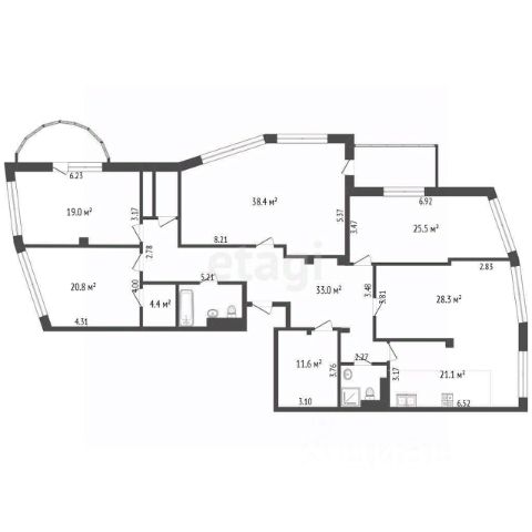 Общая площадь квартиры - 127,8 кв.м.