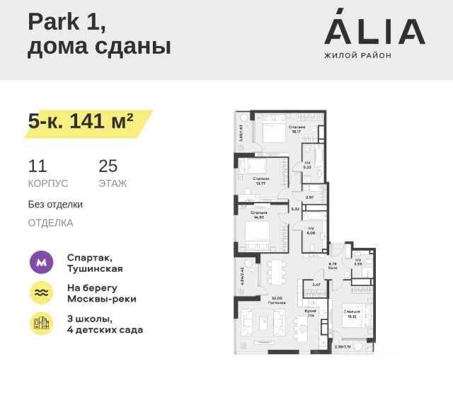 Клубный город на реке Primavera — это современный жилой комплекс премиум-класса, расположенный на первой береговой линии Москвы-реки в экологически чистом районе Покровское-Стрешнево. Под панорамными окнами квартир находится собственный экопарк с продуманной сетью прогулочных дорожек и современными детскими и спортивными площадками. За парком расположена набережная с собственным пляжем и зонами для отдыха. Клубный город на реке Primavera предлагает широкий выбор планировок для различных жизненных сценариев: от просторных однокомнатных квартир до пентхаусов и жилых помещений с террасами и патио. Выберите из 120 вариантов эргономичных планировок стандартного и евроформата. Из каждой квартиры открываются красивые виды на реку с углом обзора в 270 градусов. Дизайнерские лобби предлагают панорамный обзор на благоустроенный двор. Высокие потолки в 6 метров и качественная отделка создают атмосферу, схожую с пятизвездочными отелями. В Primavera есть всё необходимое для комфортной жизни в мегаполисе: • Образование для детей в шаговой доступности: 4 школы, 8 детских садов и развивающие центры с кружками и секциями. • Удобства на расстоянии приятной прогулки: супермаркеты, кафе, рестораны с верандами, салоны красоты, аптеки и многофункциональный центр для шоппинга и развлечений. • Умный дом: автоматизированное бесконтактное управление основными системами доступа и безопасности через мобильное приложение. Клубный город на реке Primavera выгодно сочетает комфорт городской жизни с близостью к природе. Живите в месте, где все создано для вашего удобства! Купить 5-комнатную квартиру - элитное жильё в районе Покровское-Стрешнево в Москве.