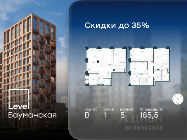 В Басманном районе (ЦАО) продается 2-х этажный ситихаус площадью 185.50 кв.м без отделки. Ситихаус расположен на 1 этаже 17-этажного корпуса " B" в жилом комплексе бизнес-класса Level Бауманская (компания Level Group). Ситихаус - это отличная альтернатива частному дому. Данный формат позволяет находиться в атмосфере загородной жизни и одновременно оставаться в условиях развитой инфраструктуры города. Персональный вход гарантирует вам высокий уровень приватности, а двухуровневое пространство с его потенциалом функционального зонирования усиливает ощущение собственного дома. Преимущества формата - Расположены на первых этажах корпусов В и С; - Площадь - от 130,9 до 191,7 кв.м; - 2 ситихауса с собственным патио; - 3 ситихауса с балконами. Расположение Level Бауманская расположен в уютном и престижном Басманном районе (ЦАО). Он даёт широкие возможности для комфортной жизни, учёбы и развития за счёт расположения здесь необходимых социальных объектов. В пешей доступности от жилого комплекса легендарный МГТУ им. Баумана - университет с 190-летней историей, Британский и Ломоносовский лицеи, а за 10 минут на автомобиле можно доехать до НИУ ВШЭ и других престижных вузов. На территории проекта также будет создана развитая внутренняя инфраструктура - собственный детский сад и 10 коммерческих помещений на первых этажах домов. Благоустройство На площади 0,35 га расположатся зоны для отдыха, занятий спортом и прогулок. Во дворе можно не только отдохнуть, но и поработать на свежем воздухе: для жителей комплекса мы создадим коворкинг прямо во дворе - открытые беседки и Wi-Fi на территории. Атмосферу приватности подчеркнёт обилие растительности - деревья и кустарники займут 50% двора. За счёт большого количества хвойных насаждений территория комплекса будет зелёной круглый год.