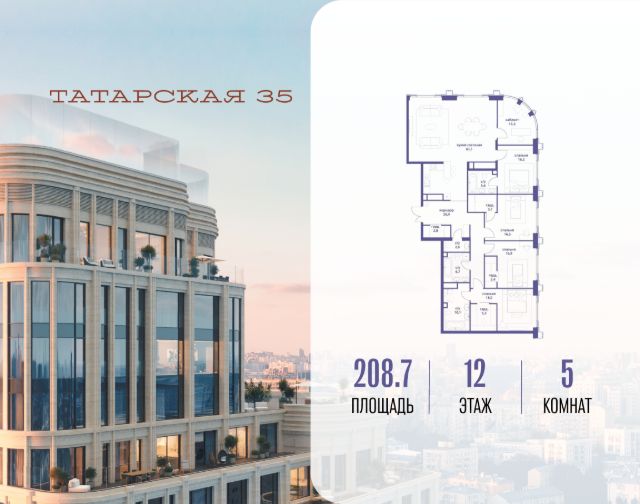 Продажа 5-комнатных квартир на 12 этаже рядом с метро Новокузнецкая