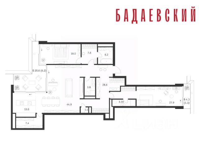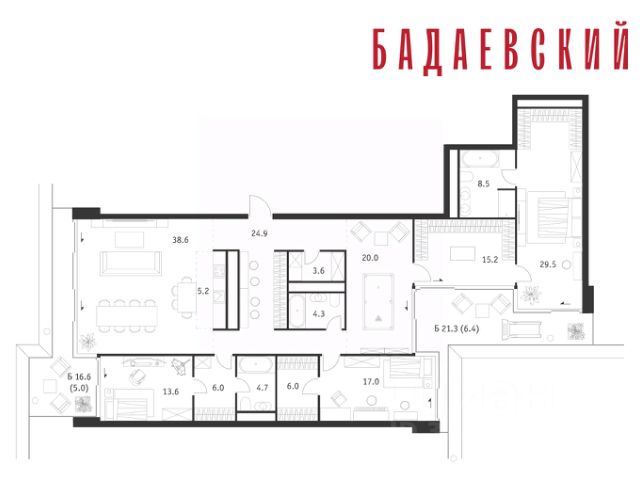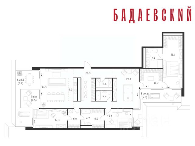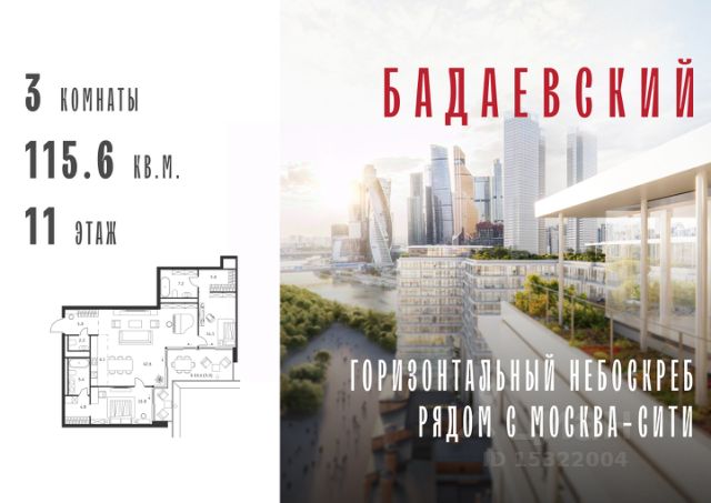 Продаётся 5-комнатная квартира общей площадью 208.50 м² на 13 этаже Жилого Комплекса Бадаевский. О нем говорили. Его ждали. Жилой комплекс "Бадаевский" на Кутузовском проспекте — это место для жизни, которое займет место в истории. Комплекс стал первым в истории московским проектом, победившим в категории Residential на World Architecture Festival. Девелопер Capital Group. В "Бадаевском" исторические здания завода и футуристические "парящие" дома создают единый комплекс, который станет новой достопримечательностью и символом Москвы. Панорамное остекление, террасы и веранды дарят неординарные и захватывающие виды. Благодаря расположению домов и панорамному остеклению, жилые пространства в "Бадаевском" будут наполнены светом. А виды из окон домов-"лент" на Москву-реку, пивоваренный завод, небоскребы "Москва-Сити" и Белый дом дополнены принципиально новым ощущением высоты. На территории Бадаевского завода появится масштабный ландшафтный парк с концепцией "русский лес". Впервые в истории района Дорогомилово у жителей появится прямая связь набережной Тараса Шевченко с Кутузовским проспектом. Близость Москвы-реки добавляет к преимуществам "Бадаевского" природную энергетику и приятные прогулки на свежем воздухе. Подземная парковка позволит сделать территорию завода полностью пешеходной, а сам комплекс представит новый подход к организации открытого и уединенного пространства в центре Москвы. Расположение в начале Кутузовского проспекта делает проект не только престижным, но и удобным: до Третьего транспортного и Садового кольца можно доехать за 5 минут, а Кремль и основные исторические достопримечательности расположены в 15 минутах на автомобиле. Напротив "Бадаевского" находится офисный кластер "Москва-Сити". Для жителей комплекс будет создано не только новое масштабное благоустройство, но и вся необходимая инфраструктура. В исторических корпусах появятся магазины, бутики, кафе и рестораны, коворкинг и крафтовая пивоварня, а в зданиях элеваторов — русская баня. Кроме того, запланирован фермерский рынок и досуговый кластер с музыкальной студией, центром детского творчества и фитнес-центром с бассейном.