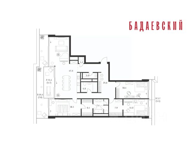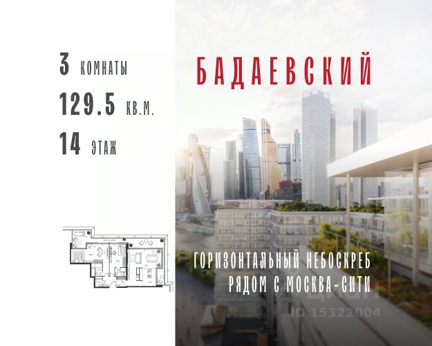 Продаётся 5-комнатная квартира общей площадью 208.50 м² на 13 этаже Жилого Комплекса Бадаевский. О нем говорили. Его ждали. Жилой комплекс "Бадаевский" на Кутузовском проспекте — это место для жизни, которое займет место в истории. Комплекс стал первым в истории московским проектом, победившим в категории Residential на World Architecture Festival. Девелопер Capital Group. В "Бадаевском" исторические здания завода и футуристические "парящие" дома создают единый комплекс, который станет новой достопримечательностью и символом Москвы. Панорамное остекление, террасы и веранды дарят неординарные и захватывающие виды. Благодаря расположению домов и панорамному остеклению, жилые пространства в "Бадаевском" будут наполнены светом. А виды из окон домов-"лент" на Москву-реку, пивоваренный завод, небоскребы "Москва-Сити" и Белый дом дополнены принципиально новым ощущением высоты. На территории Бадаевского завода появится масштабный ландшафтный парк с концепцией "русский лес". Впервые в истории района Дорогомилово у жителей появится прямая связь набережной Тараса Шевченко с Кутузовским проспектом. Близость Москвы-реки добавляет к преимуществам "Бадаевского" природную энергетику и приятные прогулки на свежем воздухе. Подземная парковка позволит сделать территорию завода полностью пешеходной, а сам комплекс представит новый подход к организации открытого и уединенного пространства в центре Москвы. Расположение в начале Кутузовского проспекта делает проект не только престижным, но и удобным: до Третьего транспортного и Садового кольца можно доехать за 5 минут, а Кремль и основные исторические достопримечательности расположены в 15 минутах на автомобиле. Напротив "Бадаевского" находится офисный кластер "Москва-Сити". Для жителей комплекс будет создано не только новое масштабное благоустройство, но и вся необходимая инфраструктура. В исторических корпусах появятся магазины, бутики, кафе и рестораны, коворкинг и крафтовая пивоварня, а в зданиях элеваторов — русская баня. Кроме того, запланирован фермерский рынок и досуговый кластер с музыкальной студией, центром детского творчества и фитнес-центром с бассейном.