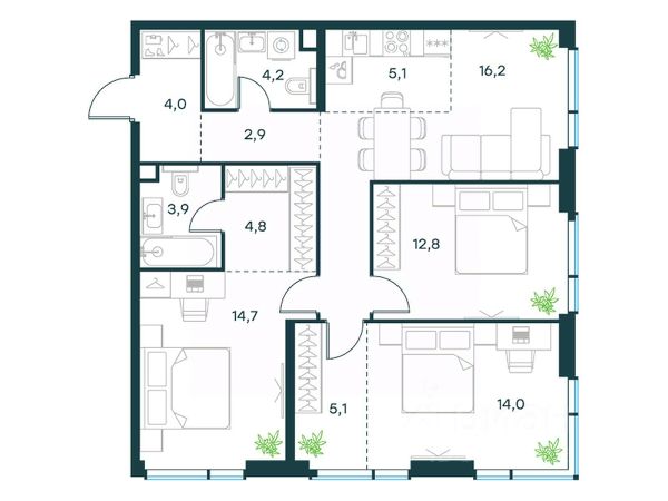 • ✓ В базе Циан 1 5-комнатных квартир на 16 этаже рядом с метро Пролетарская
