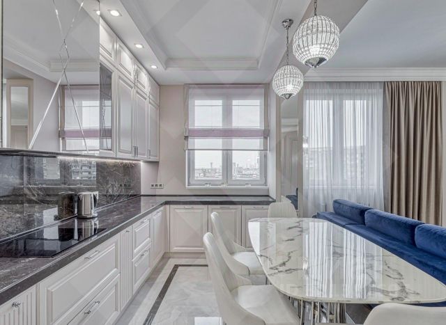 Уникальная квартира — настоящее воплощение классического стиля, комфорта и благородства. Расположена на 17 этаже дома, возведённого на холме — одной из высоких, престижных и живописных локаций Москвы. Вы будете наслаждаться завораживающими видами на мерцающие огни ночного города и величественные просторы архитектурной Москвы. Большие окна ориентированы на три стороны света. Особенности квартиры: Классический дизайн и эксклюзивный ремонт: Использованы только роскошные и дорогие материалы. Паркет — оливковое дерево массива высочайшего качества, который создаёт атмосферу тепла и изысканности. Итальянская керамическая плитка, ручная лепнина и эксклюзивные массивные двери — всё продумано до мелочей мастерами своего дела. Продуманная звуко-и теплоизоляция, а также автономная приточная вентиляционная система обеспечивают тишину, комфортную температуру и здоровый микроклимат, что особенно важно для аллергиков. Квартира занимает уникальное положение в доме, по типу пентхауса — сверху располагается только технический этаж, что полностью исключает шумы сверху. С соседями граничит лишь одна стена в кухне, что создаёт чувство уединения и обеспечивает ощущение проживания в частном доме в пределах городской среды. В квартире реализована продуманная и функциональная планировка, обеспечивающая максимально комфортное и рациональное использование пространства. Локация и инфраструктура: Дом расположен в экологически чистом районе Москвы, на холме с лучшими видами, рядом Воронцовский парк и удобная транспортная доступность к центру города — всего 10 минут до Якиманки. Это сочетание городской инфраструктуры и загородного уюта. Это предложение для тех, кто ищет не просто жильё, а статус, комфорт и вложение в качество жизни! Квартира идеально подойдет ценителю классического стиля, благородных материалов и спокойствия. Готовы организовать показ и подробную консультацию!