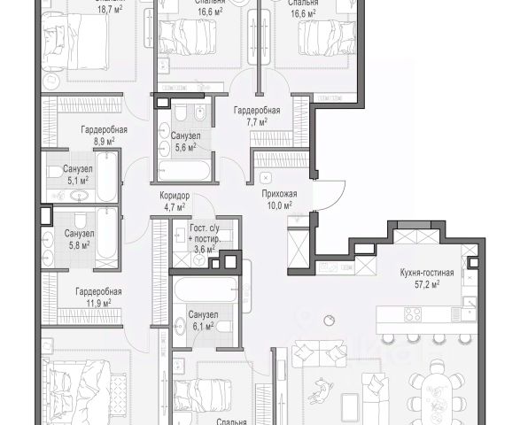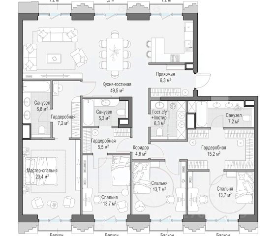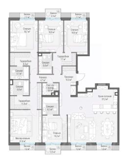 В продаже многокомнатная квартира квартира в элитном квартале "Тишинский бульвар". Общая площадь квартиры - 215.40 кв.м. Этаж 2 из 9. Корпус 8С2. "Тишинский бульвар" - тихий зелёный элитный квартал на Тишинке, в престижном и комфортном районе центра Москвы. В нём создан уникальный для элитного дома прогулочный бульвар в своём огромном парке 1,9 га. В парке оборудованы зоны для активного и тихого отдыха, крытые галереи, приватные зелёные комнаты, многофункциональная спортивная площадка, воркаут-зона, детская площадка, сухой фонтан, ручей. В пешей доступности Римско-католический кафедральный собор. Всего в полутора километрах от квартала находятся Патриаршие пруды - излюбленное место для летних прогулок, воскресных бранчей и романтических ужинов. Белая площадь расположена ещё ближе - на расстоянии 1,2 километра. Это точка концентрации деловой жизни и модных ресторанов. В "Тишинский бульваре" только для жителей и их гостей создан уникальный для элитного дома прогулочный бульвар в собственном огромном парке площадью 2,1 га, который занимает 70% территории квартала. Бульвар проходит через весь квартал и объединяет в общее пространство три двора: Кленовый, Рябиновый и Ивовый. В парке созданы крытые галереи и приватные зелёные комнаты для отдыха и медитаций в любую погоду. Насыщенное озеленение многолетними растениями с разными периодами цветения сохраняет территорию квартала красивой круглый год. В квартале насыщенная инфраструктура только для жителей, включая Clubhouse. Здесь оборудованы пространства для здорового образа жизни по стандарту FIT LAB: в парке - многофункциональная спортивная площадка, воркаут-зона, место для занятий йогой и медитации; бесплатный фитнес-клуб с бассейном. Для маленьких жителей доступны детская площадка и игровая комната по стандарту KIDS LAB. Дома оснащены самыми полными и лучшими системами.