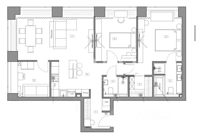 Квартиры премиум-класса в жилом комплексе SLAVA у м. "Белорусская" от застройщика. В продаже 5-комнатная квартира площадью 201 м² на 4-м этаже корпуса D. Новый современный жилой комплекс премиум-класса SLAVA расположен в той части центра, где традиция соединяется с прогрессивными городскими тенденциями. Здесь историческая Москва встречается с передовым миром. Популярные театры и старинные церкви соседствуют с современным деловым кварталом и гастрономическим кластером Депо. SLAVA находится всего в 5 мин. пешком от м. "Белорусская", по-новому открывая Ленинградский проспект. Проект был разработан легендарным архитектором Хельмутом Яном, основателем чикагского архитектурного бюро Jahn. Его работы отмечены множеством наград и реализованы в мегаполисах по всему миру. По замыслу архитекторов, жилой комплекс образуют четыре высотные башни, соединенные одноэтажным стилобатом "Хронограф". Здесь, на первом уровне, открытые и закрытые общественные пространства: небольшие сады, места для встреч и отдыха, кафе, рестораны, магазины, спортивный центр и даже выставочное пространство. Важнейшей особенностью пространства является его всесезонность: благодаря правильной организации, ландшафтному дизайну, инженерной инфраструктуре здесь будет уютно и в жару, и в xолод, и в ненастье. На втором уровне стилобата расположится приватный парк для жильцов. Особенности комплекса: - Идеальное расположение в престижной части Москвы (10 мин. от Кремля) - Панорамное остекление - Подземный паркинг с дизайнерской отделкой - Современные инженерные системы - Продуманная внутренняя инфраструктура - Приватный сад 7700 кв.м. Расположение комплекса: - 5 минут до станции метро "Белорусская" - 3 минуты до ТТК - 8 минут до "Садового кольца" Компания MR предлагает своим клиентам специальные условия приобретения квартир в рамках программ ипотечного кредитования от банков-партнеров.
