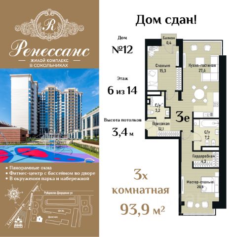 Жилой комплекс премиум-класса "Ренессанс" расположен на Рубцовско-Дворцовой улице старинного района Сокольники, в нескольких минутах ходьбы от знаменитого парка "Сокольники" - самого большого парка Москвы и одного из крупнейших в Европе, где круглый год можно прекрасно проводить время всей семьей. Из панорамных окон премиального бренда Schuco открываются завораживающие виды на сияющие в лучах солнца купола церквей и храмов, изумрудную зелень легендарного парка "Сокольники" и национального парка "Лосиный остров", излучины реки Яузы с величественной гранитной набережной, старинные здания, среди которых дворец императрицы Елизаветы Петровны, небоскребы "Москва-Сити", Останкинскую телебашню и приватную, охраняемую территорию комплекса с концепцией "двор без машин", изысканным ландшафтным дизайном, богатой коллекцией растений, пространствами для отдыха с роскошным фонтаном с красивой подсветкой, элегантной перголой, большими шахматами, детскими городками и спортивными площадками. Роскошный интерьер лобби: натуральный испанский мрамор, вертикальный фонтан, репродукции картин эпохи Возрождения, великолепная итальянская люстра ручной работы с подвесками из хрусталя CutCrystal и муранского стекла, иранские ковры и дизайнерская мебель. Лифты премиум-класса ThyssenKrupp. Консьерж-сервис. На этажах мусорокамеры закрытого типа. Из квартиры можно связаться с консьержем по видеодомофону британской компании BAS-IP. Уникальная транспортная доступность: 5 мин. на авто - до ТТК и Русаковской эстакады; 10 мин. - до Садового кольца и улицы Земляной Вал; 15 мин. - до Кремлевской набережной. В шаговой доступности - ст. м. и БКЛ "Сокольники" и "Электрозаводская". Развитая собственная инфраструктура: подземный паркинг, здание фитнес-центра с бассейнами, объекты торговли и сферы услуг. Отличная инфраструктура респектабельного района Сокольники: детские сады, элитные общеобразовательные, музыкальные и спортивные школы, ТЦ, рестораны, банки.