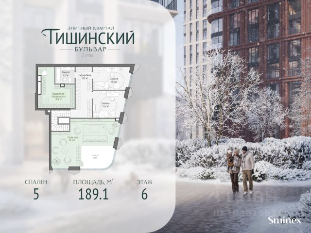 В продаже многокомнатная квартира квартира в элитном квартале "Тишинский бульвар". Общая площадь квартиры - 189.10 кв.м. Этаж 6 из 11. Корпус Ивовый 5. "Тишинский бульвар" - тихий зелёный элитный квартал на Тишинке, в престижном и комфортном районе центра Москвы. В нём создан уникальный для элитного дома прогулочный бульвар в своём огромном парке 1,9 га. В парке оборудованы зоны для активного и тихого отдыха, крытые галереи, приватные зелёные комнаты, многофункциональная спортивная площадка, воркаут-зона, детская площадка, сухой фонтан, ручей. В пешей доступности Римско-католический кафедральный собор. Всего в полутора километрах от квартала находятся Патриаршие пруды - излюбленное место для летних прогулок, воскресных бранчей и романтических ужинов. Белая площадь расположена ещё ближе - на расстоянии 1,2 километра. Это точка концентрации деловой жизни и модных ресторанов. В "Тишинский бульваре" только для жителей и их гостей создан уникальный для элитного дома прогулочный бульвар в собственном огромном парке площадью 2,1 га, который занимает 70% территории квартала. Бульвар проходит через весь квартал и объединяет в общее пространство три двора: Кленовый, Рябиновый и Ивовый. В парке созданы крытые галереи и приватные зелёные комнаты для отдыха и медитаций в любую погоду. Насыщенное озеленение многолетними растениями с разными периодами цветения сохраняет территорию квартала красивой круглый год. В квартале насыщенная инфраструктура только для жителей, включая Clubhouse. Здесь оборудованы пространства для здорового образа жизни по стандарту FIT LAB: в парке - многофункциональная спортивная площадка, воркаут-зона, место для занятий йогой и медитации; бесплатный фитнес-клуб с бассейном. Для маленьких жителей доступны детская площадка и игровая комната по стандарту KIDS LAB. Дома оснащены самыми полными и лучшими системами.