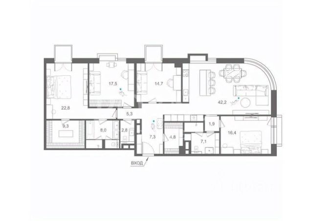 Лот: 115867. Квартира с 4-мя спальнями, большим количеством мест для хранения и индивидуальной планировкой от застройщика. На продажу предлагается пятикомнатная квартира, площадью 167 кв.м., в комплексе элитных резиденций "Victory Park Residence". Индивидуальная планировка: кухня-гостиная, три спальни, одна из которых со своим санузлом, спальня с гардеробной и санузлом, гардеробная, гостевой санузел, постирочная, прихожая. Высота потолков - 3,2 м. Из панорамных радиусных окон открываются великолепные виды на Парк Победы и Москва-Сити. Выполнена отделка в стиле Неофактура. Закрытая и охраняемая территория. Видеонаблюдение. Подземный паркинге. Насыщенная инфраструктура в торговой галерее на -1 уровне комплекса. Предусмотрено все необходимое для комфортной жизни. Для жителей Victory Park Residences благоустроены: частный парк VICTORY GARDEN площадью 4 га, большой озелененный двор, зоны для занятий спортом, детские площадки и площадки для медитации. Богатая инфраструктура VICTORY GALLERY удовлетворит самые разные запросы резидентов, при этом продуманное расположение удачно отделяет торговые пространства от жилых. Все сервисы и магазины, частично размещённые ниже уровня земли, доступны даже без выхода из здания - к ним легко и быстро можно спуститься на лифте. Удобная транспортная доступность. Участник ассоциации AREA.