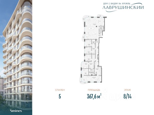 • ✓ В базе Циан 5 5-комнатных квартир на 8 этаже рядом с метро Полянка