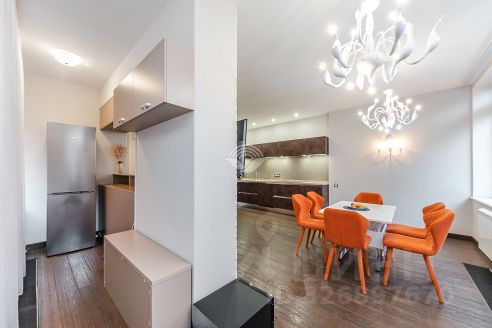 Квартира двух уровневая, с эксклюзивной лестницей, выполненной из камня, с декором из кожи по внешней стороне.