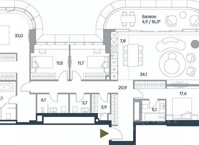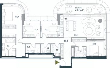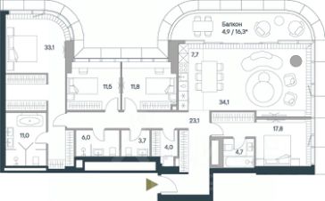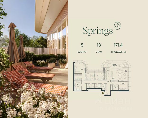 Пятикомнатная велнес-резиденция площадью 173.4 кв. м. на 20 этаже с видом на парк и центр в доме премиум-класса Springs. В квартире выполнена чистовая дизайнерская отделка. Резиденция наполнена светом и воздухом, благодаря панорамному остеклению и высоким потолкам. На первом этаже дома расположены: - фитнес-центр с бассейном; - СПА с хаммамом; - бьюти-зона с массажным кабинетом. - ресторан. Все сервисы доступны исключительно для резидентов. Всего в 2 минутах ходьбы от дома находится заповедный парк Фили прекрасное место для спокойного и активного отдыха. Зеленый массив, набережная, велотропы и открытые зоны для йоги, а также шахматный клуб, летний кинотеатр, множество беседок и кофеен. До делового комплекса Москва-Сити всего 16 минут, а центр в 14 минутах езды по Кутузовскому проспекту. Удобный выезд к Рублёвскому шоссе — отличная возможность на выходных сбежать с детьми за город, потратив на дорогу меньше получаса. Концепция благоустройства Springs, разработанная студией Wowhaus, воплощает идею взаимного проникновения парка и озеленения внутренней территории: естественная растительность, дополненная акцентами из цветников, плавно вступает во двор. В сочетании с бионической архитектурой дом является органичным продолжением природного ландшафта парка.