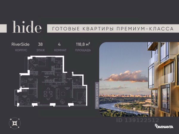 Прямая продажа от застройщика! Дом сдан, ключи в день покупки. Предлагается просторная 5-комнатная квартира 118.8 м² с отделкой white box на 38 этаже в проекте hide — жилом небоскребе премиум-класса от Dominanta и MR. ТОП-ВИДЫ НА 360: Воробьевы горы, Москва-Сити, Лужники, центр, МГУ, Парк Победы. ПРЕСТИЖНАЯ ЛОКАЦИЯ: Расположение на границе районов Раменки и Хамовники: быстро до ТТК, Москва-Сити, а рядом природа — Воробьевы горы и заказники Долины реки Сетунь. КОМФОРТ НОВОГО УРОВНЯ: панорамное остекление, "Умный дом", продуманная планировка евроформата. LIFE SPACE ДЛЯ РЕЗИДЕНТОВ: видовая терраса, хоум-офис, фитнес зал, бьюти-кабинет, общественная гостиная. Более 50% двора — ландшафтный парк с холмами и "парящими" мостами. СПЕЦИАЛЬНОЕ ПРЕДЛОЖЕНИЕ: скидка 10% при полной оплате и ипотеке без субсидий — действует до 28.02.2026. Не упустите шанс!