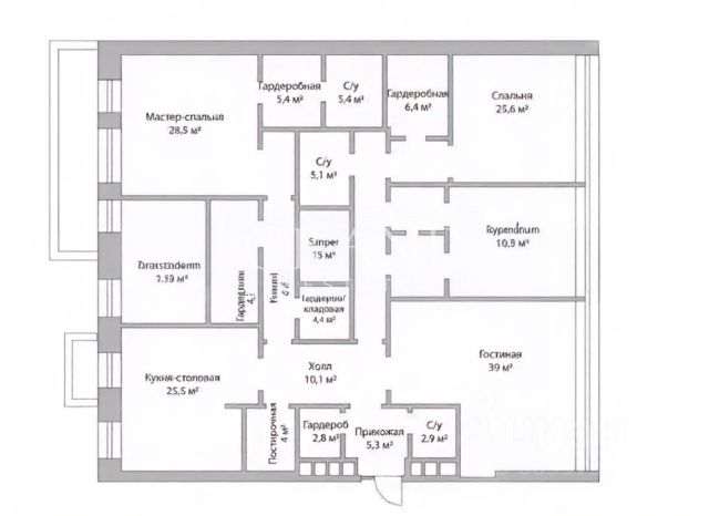 Пентхаус зонирован на кухню, гостиную с дровяным камином, 3 изолированные комнаты с с/у, гардеробные.