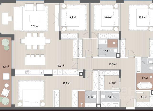 -4-5 спальни;