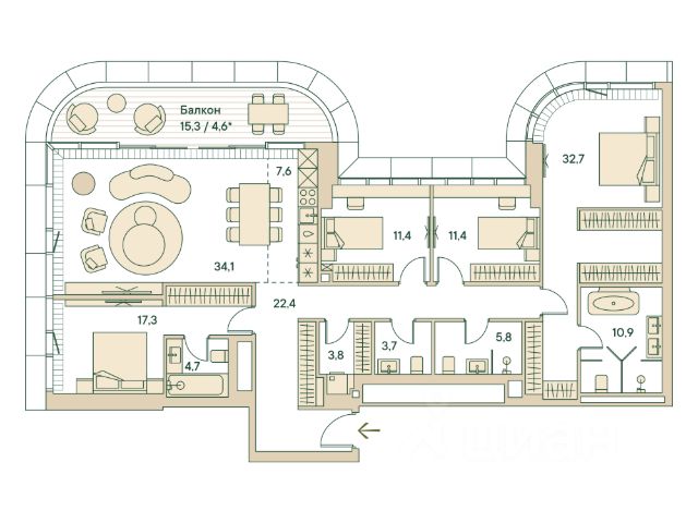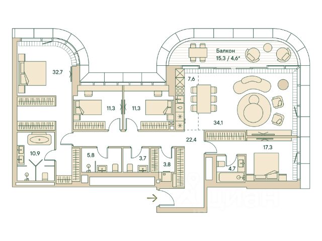 Продается пентхаус площадью 168,6 м² в башне "Гармония" клубного дома "Кутузов Сити". Это по-настоящему эксклюзивное предложение в одном из самых престижных районов Москвы. Пентхаус занимает весь этаж и отличается продуманной изысканной планировкой, которая органично разделяет приватные и общественные зоны. Просторная гостиная объединена с кухней-столовой. Вместе они образуют открытое пространство для общения и уютных вечеров в кругу семьи и друзей. Благодаря большим панорамным окнам из каждой комнаты открываются великолепные виды на парк и город, а выход на две собственные террасы позволяет наслаждаться свежим воздухом и создавать свои индивидуальные зоны отдыха — будь то семейные ужины летом или утренний кофе на рассвете. В приватной части квартиры расположены три изолированные спальни спальни. Одна из них — мастер-спальня с собственной ванной комнатой и просторной гардеробной — здесь вы по-настоящему можете уединиться и расслабиться. Особое внимание уделено деталям: высокие потолки усиливают ощущение свободы, эркеры и угловые окна подчеркивают индивидуальность интерьера. Входная зона дополнена санузлом, ванной и хозяйственным помещением. Клубная атмосфера самого дома, закрытая территория и стильные лобби создают ощущение особого статуса и безопасности, а соседство с природным заказником "Долина реки Сетунь" позволяет ежедневно наслаждаться близостью природы, не покидая сердца города. Тишина, приватность и возможность воплотить уникальные интерьерные решения — несомненные преимущества единственного пентхауса в башне "Гармония". Этот пентхаус станет для вас не просто местом для жизни — а настоящим домом, где каждая деталь подчеркивает ваше стремление к совершенству и умение ценить лучшие стороны городской жизни. О проекте: "Кутузов Сити" — клубный дом на 220 квартир, разработанный совместно с бюро Atrium и Oleg Klodt Architecture & Design. Проект строится в престижном Западном административном округе Москвы, всего в нескольких минутах ходьбы от Кутузовского проспекта. Закрытая территория, приватный двор, подземный паркинг и стильные лобби создают атмосферу комфорта и безопасности. В двух шагах от дома находится крупнейшая природная территория Москвы — природный заказник "Долина реки Сетунь". Камерная застройка и развитая инфраструктура делают "Кутузов Сити" отличным выбором для тех, кто ценит качество жизни и близость к природе. (Лот: 45) Купить 5-комнатную квартиру рядом с метро Кунцевская.