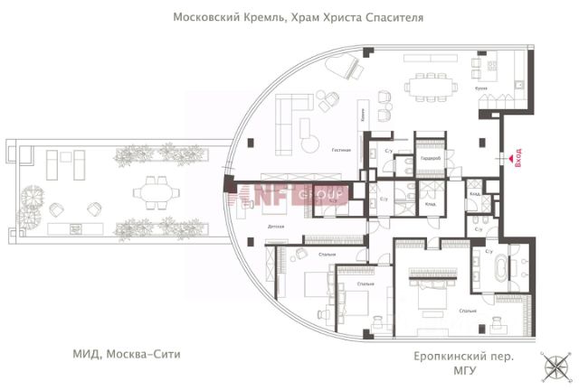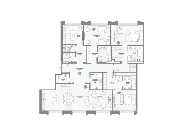• 3 Спальни, кабинет, просторная гостиная, гардеробные при каждой