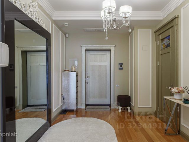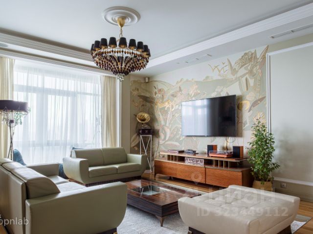 В квартире выполнен дизайнерский ремонт в стиле американской классики. Отделка выполнена из премиальных материалов с использованием натурального камня — зеленый оникс и натурального дерева. Панорамные видовые окна, широкие подоконники из натурального камня. Квapтирa меблирoвaнa дорогостоящей авторской мебелью из массива дерева и оcнaщена бытовoй тexникой Kuppersbusch,Liebherr, Asko.
