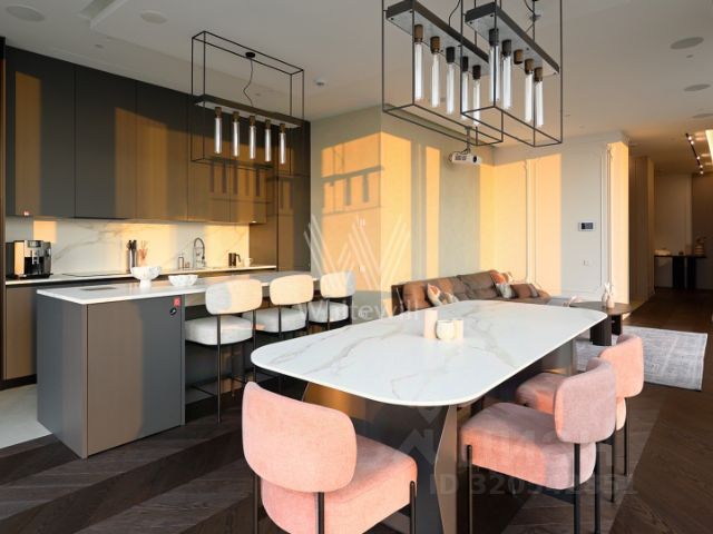 Ремонт выполнен с использованием качественных натуральных материалов отделки. Дизайнерская мебель и премиальная бытовая техника, скрытая система кондиционирования.