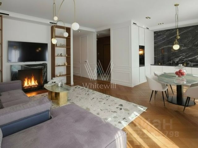 Квартира с 3 спальнями в комплексе Балчуг Резиденс на Золотом острове — центральная часть острова Балчуг, омываемого с двух сторон Москвой-рекой и Обводным каналом от архитектора Хади Тегерани. На весь комплекс всего на 388 апартаментов, в 2,9 км от Кремля. Можно сделать 4 спальни без дополнительных вложений. Вид на Никольскую церковь.