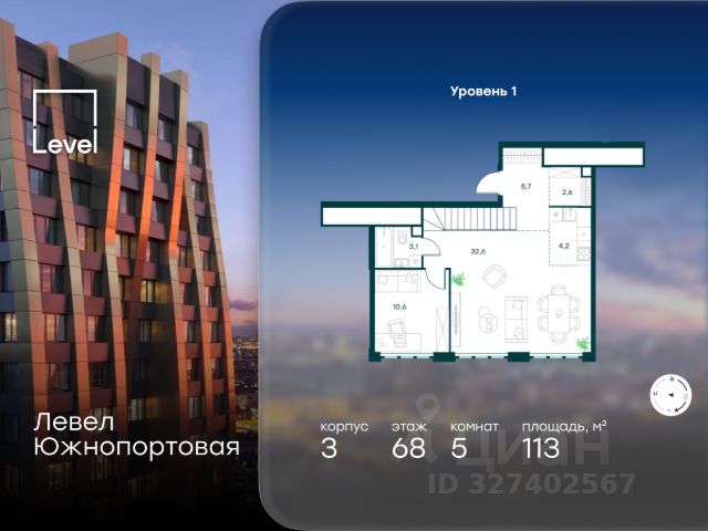 Цена указана с учётом скидки при 100%-й оплате, несубсидированной ипотеке, рассрочке (кроме программы "Рассрочка 0%"). В северной части района Печатники продается многокомнатная квартира площадью 113.00 кв.м без отделки. Квартира расположена на 68 этаже 68-этажного корпуса 3 в жилом комплексе комфорт-класса Левел Южнопортовая (компания Level Group/Левел групп). Отличная транспортная доступность: - 10 мин. пешком до станции метро "Кожуховская"; - 20 мин. пешком до станции МЦК "Дубровка"; - 3 мин. на авто до ТТК; - 13 мин. на авто до Садового кольца; - 15 мин. на авто до Бульварного кольца. Продуманный архитектурный проект: - авторская архитектура от бюро СПИЧ; - уникальные виды на реку, парки и достопримечательности города; - высота потолков в квартирах до 6 м; - окна высотой до 1,87 м с высоким коэффициентом сопротивления теплоотдаче. Расположение: Жилой комплекс Левел Южнопортовая строится в северной части района Печатники - самой приближенной к центру. Здесь будет сформирован новый район "Южный порт", где построят крупный жилой и общественно-деловой центр, аналогичный Москва-Сити. В течение 10-12 лет в этом месте появятся не только жилые дома, но и развитая инфраструктура для жизни и работы. А еще совсем рядом находится набережная Москвы-реки, где планируется построить причалы для речных трамвайчиков и канатную дорогу. Уже сейчас вокруг жилого комплекса работают десятки магазинов и торговых центров, рядом расположено 6 парков, среди которых музей-заповедник "Коломенское". В 10 минутах пешком - 2 муниципальных и 2 частных детских сада, 7 общеобразовательных школ. Внутренняя инфраструктура: Для отдыха жителей в каждом корпусе предусмотрено лобби, оснащенное местами для отдыха, гостевыми санузлами и лапомойками, а в отдельных корпусах - камином. За счёт больших окон и высоких потолков пространства будут наполнены воздухом и светом. На первых этажах жилого комплекса откроются магазины, салоны красоты, фитнес-центр. Для детей строятся собственные детский сад и школа. Благоустройство: Внутренний двор комплекса разработан совместно с бюро GAFA. Основная идея - создать аналог Центрального парка в Нью-Йорке, гармонично сочетая высотные здания и большое изолированное парковое пространство. Вся площадь двора-парка будет огорожена и составит более 2 га, из которых 45% - озеленение. Одним из самых важных ландшафтных элементов здесь станет небольшая речка, наполняющаяся во время дождя. Вокруг неё появится сеть из островов, внутри которых расположатся тематические зоны спорта и отдыха. Технологии и инженерия: - автоматическая передача в управляющую компанию показаний квартирных счётчиков; - телефонная связь, телевидение и интернет на базе оптической мультисервисной сети; - гостевой Wi-Fi в лобби и на территории двора; - единый ключ доступа для входа на территорию комплекса.