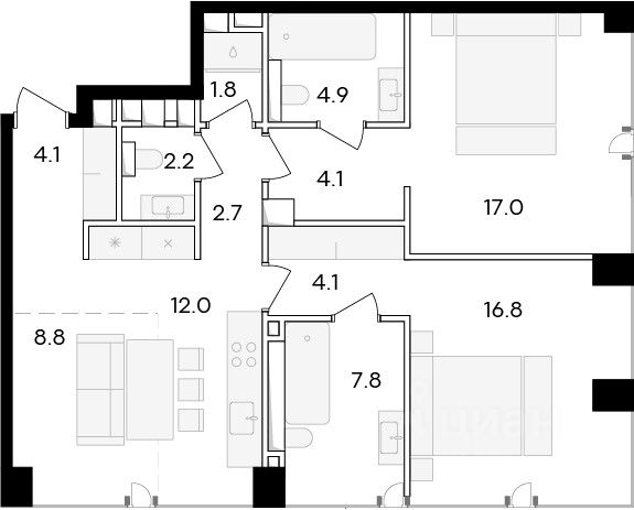 Редкое предложение | 4 спальни | ЦАО В премиальном жилом комплексе Republic предлагается 5-комнатная квартира 127,77 м² с 4 спальнями на 14 этаже в корпусе Reds 1. Ваше личное пространство для комфортной жизни! ФУНКЦИОНАЛЬНАЯ ПЛАНИРОВКА: • Просторная кухня-гостиная центр притяжения всей семьи. • Четыре изолированные спальни личное пространство для каждого. • Три санузла продуманное удобство для всей семьи. • Функциональная прихожая место для хранения и стильных интерьерных решений. Квартира без отделки, что позволяет создать индивидуальный дизайн-проект в премиальном жилом комплексе. О КОМПЛЕКСЕ: Republic это современный жилой комплекс премиального уровня с авторской архитектурой и развитой инфраструктурой: • Клубная гостиная стильное пространство для встреч и отдыха. • Фитнес-зал в 2 этажа с wellness-зоной тренировки и восстановление без выхода из дома. • Ландшафтный парк приватные зоны отдыха и workout-площадки. • Коворкинг и переговорные зоны удобное пространство для продуктивной работы. • Подземный паркинг с местами для электрокаров и кладовыми. ИНФРАСТРУКТУРА: Пресненский район — это сердце Москвы, где динамика мегаполиса сочетается с комфортом премиального уровня. Здесь каждый найдёт своё: элитные рестораны, зелёные парки, престижные школы и удобную транспортную инфраструктуру. Удобство для жизни • Лучшие школы Москвы: Гимназия 2030, Лицей ВШЭ, школы "Президент", CIS Russia. • Детские сады с углублённым изучением языков и творческими программами. • ТРЦ "Афимолл Сити" с люксовыми магазинами, ресторанами и кинотеатрами. Места для отдыха • Парк Красная Пресня с прудами, зонами для пикников и велодорожками. • Сад Аквариум — уютное место в центре с фонтанами и вековыми деревьями. • Екатерининский парк с просторными аллеями для прогулок. Культовые заведения • Рестораны с видами: "Sixty" в башне Федерация, "O2 Lounge" в Ritz-Carlton. • Арт-пространства: "Гараж", "Музей современного искусства", "Дом музыки". • Исторические места: Московский зоопарк, Усадьба Голицыных, Дом-музей Горького. ТРАНСПОРТНАЯ ДОСТУПНОСТЬ: Пресненский район центр столицы! • Метро Белорусская и Улица 1905 года всего несколько минут. • В пешей доступности Москва-Сити, Патриаршие пруды, топовые рестораны и лучшие городские сервисы. УСЛОВИЯ СДЕЛКИ: • Переуступка. Купить 5-комнатную квартиру на улице Пресненский Вал в Москве.