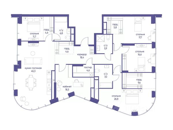 В престижном районе Пресня, на перекрестке делового и исторического центров Москвы, продается многокомнатная квартира площадью 216.40 кв. м без отделки. Квартира находится на 21 этаже 24-этажного дома, в новом элитном жилом комплексе "Начало" от девелопера "Донстрой". Реализация проекта запланирована на 1 квартал 2030 года. Начало - футуристический дом на Пресне в нескольких минутах от Сити и Садового кольца. Проект по-настоящему космического масштаба, где есть все, чтобы раскрыть себя и свои возможности. Расположение Пресня - один из самых престижных районов Москвы. Жить здесь - значит стать частью истории столицы, быть в эпицентре деловой активности города и ощущать, как сама Вселенная вращается вокруг вас. - 5 минут пешком до Красногвардейских прудов; - 15 минут пешком до ст. метро "Улица 1905 года"; - 6 минут на автомобиле до Садового кольца и небоскрёбов "Москва-Сити"; - 12 минут на автомобиле до Кремля. Архитектура как путешествие Как росток пробивает скалу, как растет кристалл, как ракета устремляется ввысь - так формируется архитектурный образ этого дома. Точно выверенный баланс между футуристичными формами и функциональным содержанием дома выводит жизнь в нем на новую орбиту. Стеклянные фасады отражают небо и город, превращая здание в зеркало для окружающего ландшафта. Двор между небом и землёй Просторная территория двора с тремя тематическими зонами отдыха: "Млечный путь" - для детских игр и развлечений; "Космический сад" - для тихого отдыха и релакса; "Метеоритный сад" - для любителей спорта. Открытый променад - сквозной маршрут на крыше стилобата с зонами отдыха, занятий спортом, детских игр и совместной работы. Все площадки плавно связаны между собой прогулочной дорожкой. Теплая кольцевая галерея и мосты над пространством двора - все корпуса "стыкуются", точно модули космической станции. Главный центр притяжения В составе проекта возводится собственный комьюнити-центр, где создана идеальная атмосфера для любых начинаний: - Детский клуб для будущих покорителей Вселенной; - Коворкинги для решения задач планетарного и космического масштабов; - Переговорные для судьбоносных и просто важных встреч; - Лаунжи с атмосферой дзена и релакса; - Библиотека для спокойного чтения; - Кинотеатр для классики и блокбастеров. Территория комфорта и приватности Всё нужное рядом: - Современный образовательный центр со школой и детским садом - для ваших детей; - Фитнес-центр с бассейном - для релакса и борьбы со стрессом; - Ресторанная улица: кафе, рестораны, летние террасы - для деловых обедов и семейных ужинов; - Пекарня и минимаркет в доме - для ежедневных покупок; - Сквер у дома - для неспешных прогулок и спокойного отдыха; - Никаких такси на улице. Машина заберет вас прямо в подземном паркинге вашего корпуса. 5-комнатная квартира на улице Сергея Макеева в Москве.