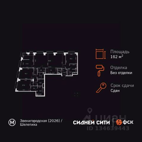В жилом квартале продаётся многокомнатная квартира площадью 121.70 кв.м с предчистовой отделкой. Квартира расположена на 48 этаже 48 этажного корпуса 1 в жилом комплексе комфорт класса Левел Звенигородская (компания Level Group/Левел групп).