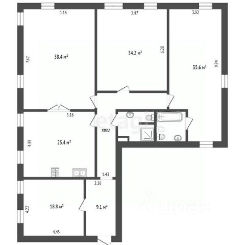 Высота потолков, кроме гостиной, 3,4 м.