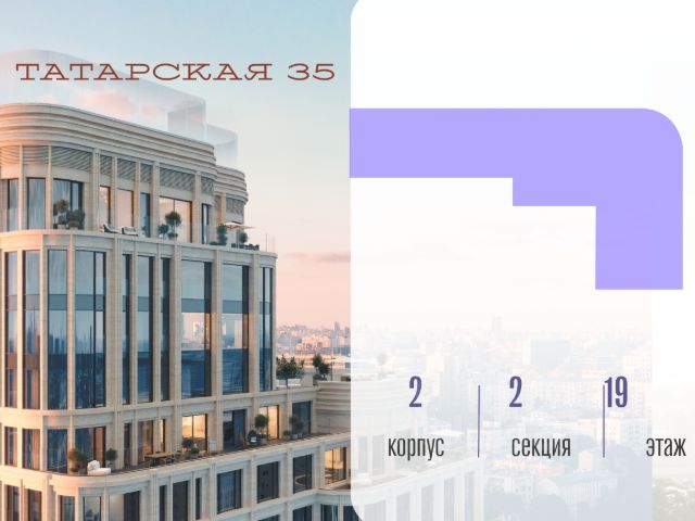 Продается просторная квартира площадью 263.60 м2 в жилом комплексе ТАТАРСКАЯ, 35. Квартира находится в 2 секции корпуса 2. Этаж 19-й из 19. Квартира без чистовой отделки, с просторной кухней 83.90 м2. Жилая площадь 89.00 м2. Высота потолка от 3.50. ТАТАРСКАЯ, 35 - новая архитектурная доминанта Замоскворечья, достопримечательность на фотопанорамах исторического центра Москвы. Элитный дом, созданный для тех, кто умеет смотреть далеко вперед, мыслить масштабно и воплощать собственный сценарий жизни. Вдохновляющие прогулки по променаду набережной, в уютных переулках, в парке "Зарядье", в Михайловском саду и Репинском сквере. Наслаждение высоким искусством в Третьяковской галерее, Доме Музыки, театральном музее им. А.А. Бахрушина, театре на Малой Ордынке. За окнами - Кремль, высотка на Котельнической, панорамы Замоскворечья и острова Балчуг, огни Садового кольца. Собственные спорт-румы, детская, репетиторская, бьюти-пространства, деловое пространство с коворкингом, переговорной и сигарной. Собственный трехуровневый фитнесс-центр с бассейном, тренажерным залом, сауной, хаммамом, массажным кабинетом. Площадь двора - 1,8 га, половина территории покрыта деревьями, кустарниками и лужайками. Дом расположен внутри Садового кольца - отсюда в считанные минуты можно добраться до важнейших мест столицы: достопримечательностей и парков, театров и ресторанов, деловых и административных центров. 7 минут до Кремля на автомобиле, 15 минут до Третьяковской галереи и 8 минут до Садового кольца пешком. Планировочные решения и визуализации предварительны, возможны изменения.
