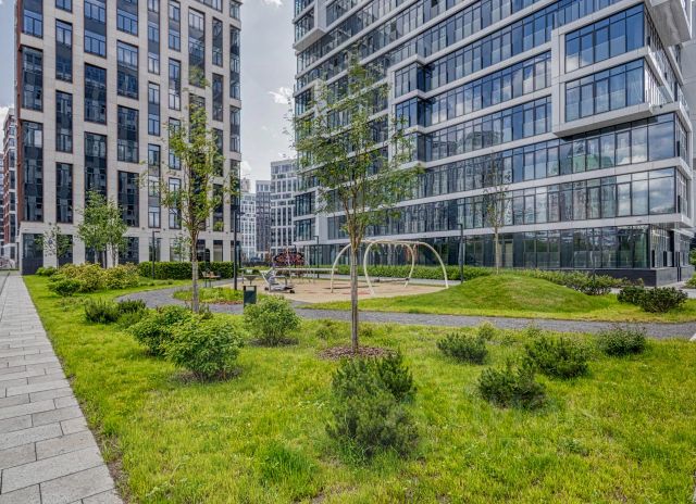 Внутренняя территория ЖК закрытая, изолированная от движения автомобилей (двор без машин) с проходом по магнитным картам. Много детских площадок и уличных тренажеров. В доме фитнесс X-fit (на него можно попасть не выходя на улицу по подземному паркингу). В комплексе есть все необходимое огромный магазин Азбука Вкуса, рестораны, кафе, студии красоты, цветочные магазины, маникюр, химчистка, автомойка/шиномонтаж, аптеки.