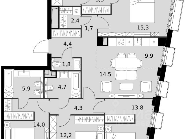 Продается двухуровневый пентхаус без отделки в башне Neva Towers с видом на три стороны света Общая площадь: 764,6 м² Этаж: 66 и 67 Открытая терраса: 139 м² Видовые характеристики: юг (панорама башен Москва-Сити), запад (Москва-река, Парк Победы, Фили) и восток (вид на Краснопресненский парк) Продажа пентхауса напрямую от застройщика. Рассрочка без процентов, скидка 15% (текущая цена уже с учетом скидки). Первый этаж пентхауса раскинулся на 2 стороны света это южная и западная, здесь можно организовать угловую кухню-гостиную, кабинет, личный тренажерный зал и spa-зону. Второй этаж пентхауса (67 этаж) имеет панорамное остекление и вид на три стороны света: запад, юг и восток. Здесь площади хватит для размещения спален, большой гардеробной и гостевых зоню Открытая угловая терраса на 1-ом уровне 66 этажа позволит вам каждый день наслаждаться закатами столицы. О комплексе: Neva Towers — единственный жилой комплекс в "Москва-Сити" с собственным парком на уровне 4-го этажа. Инфраструктура парка включает открытый бассейн, шезлонги, лаунж-зоны, детскую площадку, спортивные и прогулочные зоны. Сервис уровня премиального отеля: фитнес-клуб с бассейном и открытым джакузи, SPA, закрытый кинозал, рестораны и кафе (Кофемания, Ivanka, TimeLess, Bluefin и др.), химчистка, аптека, private bank, салон красоты. Территория и паркинг: огороженная приватная территория, сквозной проезд к башням без пропусков, зона быстрой посадки/высадки, многоуровневый паркинг для жителей и гостей. Жилой комплекс сдан и заселен.