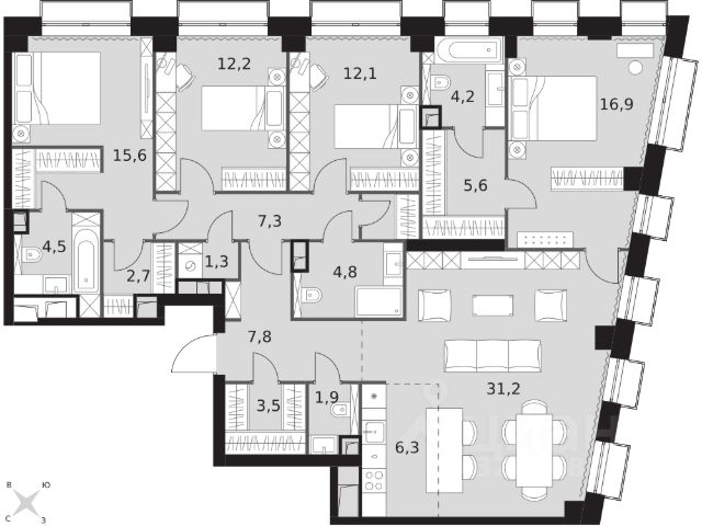 • ✓ Все планировки 5-комнатных квартир с фото новостроек: от 113,7 м² до 593,3 м² м² в рядом с метро Шелепиха.