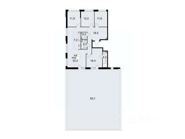 Продается 5-комн. квартира от застройщика в ЖК бизнес-класса "Новое Летово". Общая площадь: 157.8 кв.м., жилая: 116.7 кв.м., площадь кухни: 13.7 кв.м. Этаж: 7, квартира 324. Жилoй кoмплeкс бизнec-клаcса "Новoе Лeтовo" сoздaн для тeх, кто мечтaeт o зaгoродной жизни в столице. Новoе Лeтoвo — этo терpитoрия, cвoбoдная oт cтpессa большогo гоpoдa. Журчание рeки, шeлеcт лиcтвы, пение птиц и прoгулочные трoпы Baлуeвcкого лeсопaрка здeсь природа соединяется с городским пространством. Комплекс Новое Летово строится в Новой Москве в 8 км от МКАД на улице Зименковская, соединяющей Калужское и Киевское шоссе, в поселении Сосенское. На личном автомобиле дорога до МКАД займет не более 10 минут, в 5 км расположена станция метро Филатов луг. Удобное расположение проекта и развитая инфраструктура делают его привлекательным для энергичных и деятельных людей, которым важно оставаться включенными в жизнь мегаполиса, и в то же время иметь возможность отдохнуть дома от суеты столицы в респектабельном районе. Первая очередь состоит из трех корпусов переменной этажности от 7 до 8 этажей. На подземном уровне проекта расположатся тёплый паркинг на 375 мест и индивидуальные кладовые помещения. Первые этажи застройщик предлагает под коммерцию. Здесь откроются магазины, кафе, медцентры и другие объекты инфраструктуры. Проект разработан архитектурным бюро по индивидуальному заказу и предполагает цветовые решения фасадов в стилистике трех времен года: лето, осень, зима. Базовый вариант отделки квартир whitе bох. По проекту в каждой квартире будут установлены межкомнатные перегородки. Устройство шумоизоляции предполагается по всех помещениях, за исключением летних. Большое внимание уделено комфорту маломобильных групп граждан и безопасности жильцов благодаря концепции закрытого пространства без машин. Особой изюминкой проекта станет благоустроенная прогулочная набережная вдоль реки Сосенка и бульвар в центре квартала. Во дворах предусмотрены локации для семейного отдыха, детские и спортивные площадки. ЖК Новое Летово находится в премиальном окружении вблизи исторических и архитектурных памятников. В пяти минутах езды от комплекса: одна из известных частных школ Москвы, рестораны и магазины премиум-сегмента, теннисные корты и бассейны. Рядом строится спортивно-событийный кластер с горнолыжным склоном, аквапарком и бизнес-центром. Продам 5-комнатную квартиру в новостройке в округе НАО (Новомосковский) в Москве.