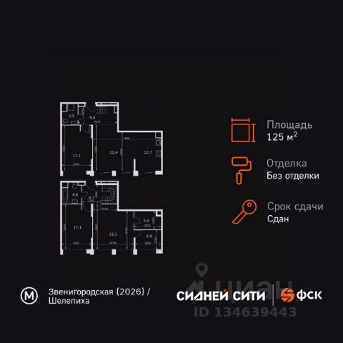 Цена указана с учётом скидки при 100%-й оплате, несубсидированной ипотеке, рассрочке (кроме программы "Рассрочка 0%"). В жилом квартале продаётся многокомнатная квартира площадью 121.70 кв.м с предчистовой отделкой. Квартира расположена на 48 этаже 48 этажного корпуса 1 в жилом комплексе комфорт класса Левел Звенигородская (компания Level Group/Левел групп). Отличная транспортная доступность - 5 мин. пешком до метро "Звенигородская" (откроется к окончанию строительства); - 18 мин. пешком до станции МЦК "Хорошёво" и станции БКЛ "Народное ополчение"; - 4 мин. на авто до ТТК; - 8 мин. на авто до Садового кольца; - 15 мин. на авто до Кремля. Продуманный архитектурный проект - Концепция от студии Станислава Михаловского, в основу которой легло единение природы и города; - Двухкамерные стеклопакеты в окнах, алюминиевый и ПВХ профиль - в квартирах тепло зимой и прохладно летом; - С верхних этажей открываются панорамные виды на город, Москву-реку, "Москва-Сити" и Москворецкий парк; - Лобби со всеми удобствами: окна в пол, высокие потолки до 4,7 м, лаунж-зоны, колясочные, гостевые санузлы и мойки для лап животных; - Централизованные водонагреватели гарантируют круглогодичную подачу горячей воды в каждую квартиру. Благоустройство Концепция благоустройства разработана совместно с бюро UNK landscape. Высота башен приближается к 200 метрам - они словно касаются неба. Небесный простор проецируется на территорию двора с помощью подсветки, визуально увеличивая пространство и отражаясь в авторских элементах архитектуры. На территории площадью 0,45 га расположатся: - "Облако событий" - место встреч и общения; - "Облако спорта" - всё для поддержания себя в форме; - "Облако принятия решений" - пространство для работы на свежем воздухе; - "Облако спокойствия" - для отдыха в тишине природы; - "Облако игр" - площадки для подростков и самых маленьких. Инфраструктура В жилом комплексе откроется 21 коммерческое помещение: продуктовые лавки, кафе, салоны красоты, службы доставки и творческие студии. Этап 1 включает строительство двухуровневого подземного паркинга. Всего здесь расположится 351 машино-место, включая семейные места, и 264 кладовых помещения. В распоряжении жителей развитая инфраструктура района: 15 супермаркетов, 5 спортивных объектов, 9 медучреждений, 7 детских садов, 4 школы, 3 благоустроенных парка - всё в шаговой доступности. Инженерия Комфортное перемещение внутри домов будут обеспечивать надёжные лифты с доступом в паркинг с жилых этажей. В каждом корпусе предусмотрено до шести кабин, включая сервисные лифты. Попасть на территорию комплекса можно только по единому ключу доступа. Видеонаблюдение установлено на входах в подъезды, в лобби, в общих зонах, на въезде в паркинг. Гости смогут связаться с жителями дома через входные видеопанели, а управлять доступом на территорию можно через видеодомофон или приложение на телефоне.