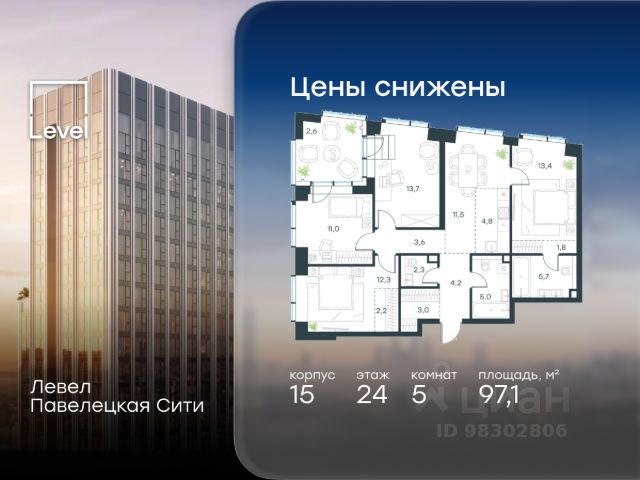 Рассрочка 0% с платежом от 250 000 ₽ в месяц. 5-комн. квартира в ЖК "ЭРА" на 41 этаже в 52 этажном здании Корпус 5. Общая площадь: 151.7 кв.м., жилая: 112.00 кв.м. Высота потолков 3.30 м. Современный премиум-квартал ЭРА на Дербеневской набережной, формирующий новый архитектурный облик Даниловского района Москвы. Жилой комплекс из шести высотных корпусов выполнен в актуальной интерпретации стиля ар-деко, где ритмичные линии фасадов, натуральный мрамор и изысканные орнаменты создают гармоничный и запоминающийся образ. ЭРА предлагает жителям единый просторный закрытый двор. Инфраструктура двора включает разнообразные детские игровые площадки, зоны для занятий спортом, а также места для спокойного отдыха — в всесезонном зеленом лабиринте или яблоневом саду. Для озеленения территории планируется высадка около 3000 деревьев и кустарников. Их сохранность обеспечат система автополива, а для комфорта в холодное время года малые архитектурные формы будут оборудованы подогревом. Вторая очередь комплекса включает три корпуса высотой от 37 до 52 этажей. Впечатляющие входные группы, разработанные бюро ХААСТ, встречают жителей потолками 8,8 метров. В лобби создана атмосфера уюта благодаря индивидуальной ароматизации и музыкальному сопровождению. Здесь же обустроена кофейная зона с профессиональной кофемашиной, а для дополнительного удобства установлен постамат. Высокий стандарт чистоты в любое время года обеспечивают роботы-уборщики, что подчеркивает технологичность комплекса ЭРА. Для комфортного подъезда такси перед каждым корпусом предусмотрены специальные зоны подачи машины и высадки пассажиров. Подземный паркинг на 285 мест. Ключевое преимущество — превосходная локация в развивающемся районе с готовой инфраструктурой. Всего в 5 минутах от Садового кольца, в шаговой доступности от Замоскворечья и набережной Москвы-реки, вы сможете наслаждаться динамикой городской жизни. При этом в самом комплексе на первых этажах будут работать кафе, магазины, салоны красоты и детские образовательные пространства. ЭРА — это гармоничный симбиоз статусного адреса, безупречного сервиса и приватности для жизни вашей мечты. 5-комнатная квартира в новостройке в округе ЮАО в Москве.