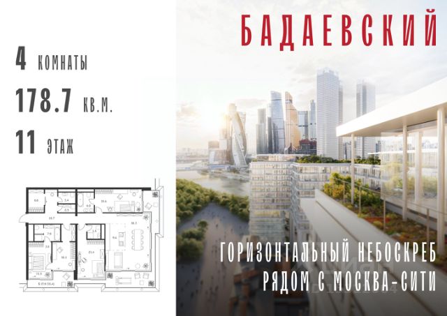 - окна в пол высотой 2,5-2,68 м, из которых открываются панорамные виды на МГУ, Москва-Сити и другие достопримечательности;
