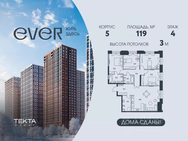 В продаже 4-комнатная квартира с приватными террасами на две стороны - идеальный вариант для семей, которые особенно ценят баланс приватности и общих зон. Благодаря продуманному зонированию у всех домочадцев будет личное пространство, а кухня-гостиная станет уютным местом для приема гостей. Особое преимущество лота - пространство квартиры способно адаптироваться под любые жизненные сценарии. Жилой комплекс бизнес+ класса STONE Grain находится на Юго-Западе Москвы в Обручевском районе. Расположение вблизи двух станций метро и ключевых транспортных магистралей обеспечивает быстрый доступ к центру столицы и соседним районам: - 2 мин. до м. "Калужская" и "Воронцовская" - Удобный выезд на ул. Обручева и ул. Профсоюзную - 2,5 км до Ленинского проспекта - 6 км до ТТК и МКАД - 10 км до Садового кольца и Рублёвского шоссе - 30 мин. на автомобиле до "Москва-Сити", Лужников и МГУ Проект расположен в районе с развитой образовательной и социальной базой. Рядом с жилым комплексом находятся ведущие вузы Москвы, лучшие детские сады и школы. Среди других особенностей - зеленое окружение, близость к Воронцовскому парку. Проект отличает выверенная архитектура от Kleinewelt Architekten. Башня А высотой в 45 этажей станет архитектурной доминантой с выразительными поясами балконов галерейного типа и эксклюзивными лотами со вторым светом. Камерная 20-этажная башня Б со скатной крышей будет включать двухуровневые квартиры с террасами. На закрытой благоустроенной территории разместятся игровые площадки для детей разных возрастов, workout-зона, павильоны для работы на открытом воздухе. Жители также смогут воспользоваться дополнительными зонами отдыха и инфраструктурой на территории, прилегающей к офисному кварталу класса А STONE Калужская. Комфортный микроклимат в квартирах обеспечивают современные инженерные решения. Для удобства жителей предусмотрен двухуровневый подземный паркинг на 270 машиномест. STONE - девелопер коммерческой и жилой недвижимости классов бизнес и премиум в Москве с 19-летним опытом. Сегодня занимает лидирующую позицию на офисном рынке (рейтинг РБК). В портфеле девелопера представлено 3 млн кв. м построенных, строящихся и проектируемых объектов, из которых более 1 млн кв. м находятся в стадии строительства. Компания имеет самый масштабный проектный портфель офисной недвижимости класса А на московском рынке (данные NF Group) и возглавляет топ устойчивых девелоперов, согласно исследованию FResearch - Forbes. В настоящий момент девелопером представлено 16 бизнес-центров класса А, а также 3 жилых комплекса бизнес+ класса. ID.29372 5-комнатная квартира в новостройке в округе ЮЗАО в Москве.