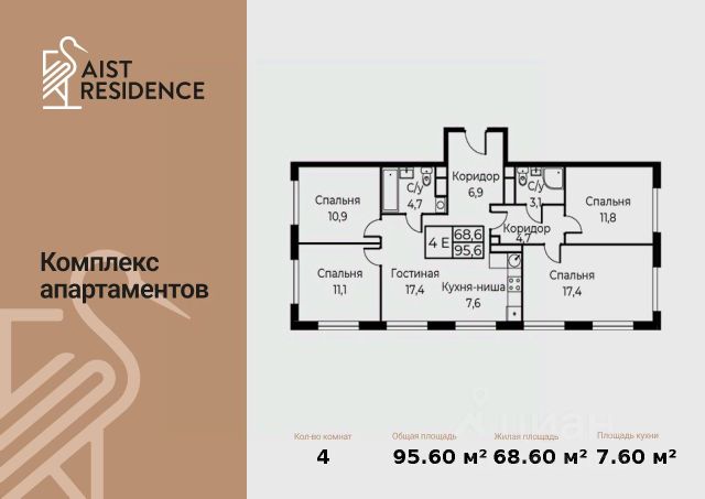 • ✅ Минимальная площадь: 95,6 м²
