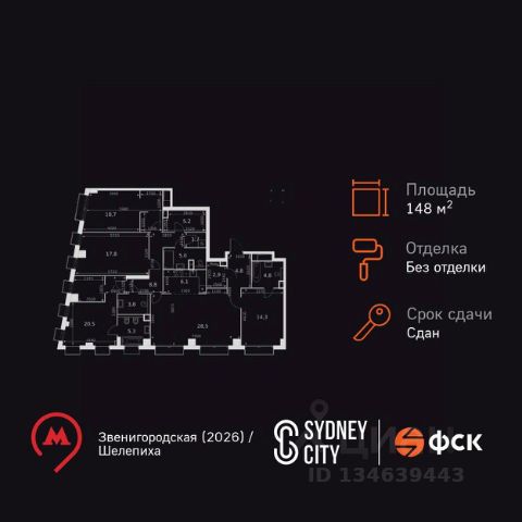 Прямая продажа от застройщика! Жилой Комплекс премиум-класса. Продаётся 5-к квартира номер 636 общей площадью 148.2 кв.м. на 37-м этаже 43 этажного здания. Без отделки. Цена с учётом скидки. Особенности квартиры: - Мастер-зона с санузлом и гардеробной. Всё для вашего комфорта и удобства, включая личный санузел и гардероб. - Просторная спальня, в которой можно разместить большую кровать. - Угловая планировка - больше пространства для ваших идей. - Окно в ванной - натуральное освещение для уюта и комфорта. - Увеличенная ширина окна/окон - больше света и визуального простора. - Увеличенное количество окон - дополнительное освещение и свежий воздух. - Окна в пол - панорамный вид и максимальное количество света. - Гостевой санузел - комфорт и удобство для ваших гостей. - Душ помимо ванной - дополнительное удобство для вашей семьи. - Постирочная - организуйте пространство для стирки и сушки вещей. - Евроформат - просторное и удобное жилье с отличной планировкой. - Место для игры/занятия спортом - идеальное пространство для активных детей. - Можно оборудовать рабочее место - комфорт для работы и учёбы. - Просторная мягкая зона - комфорт и уют для отдыха всей семьи. - П-образная утопленная кухня - оптимальное решение для большой семьи. - Возможность добавить спальное место - дополнительный комфорт для гостей. - Проходная кухня-гостиная - идеальное пространство для общения и готовки. - Гардеробная - удобство для хранения и организации вещей. - Просторная гардеробная - место для вашего личного пространства. - Ниша под шкаф - компактное и удобное место для вещей. Информация о комплексе: Премиум-класс прямо на берегу Москвы-реки, с прямым выходом на набережную и потрясающими панорамными видами! На Шелепихинской набережной, расположен причал для речных трамваев. Вам станет доступна единственная столичная транспортная артерия, на которой никогда нет пробок: 20 минут до Москва-Сити, да еще и с вдохновляющими видами по пути. Входные группы домов - это индивидуальные дизайн-проекты, посвященные трем главным местам в жизни Лермонтова: Тарханам, Петербургу и Кавказу, которые объединяют сочетание эстетики и комфорта. Бурная жизнь соседей больше не сможет нарушить ваш покой, а к вам никто не постучит, если вы захотите прибавить громкость в любимом музыкальном треке или Ваши дети захотят устроить ночную пробежку! Живите только по своим правилам. В каждой квартире подключен базовый пакет Умная квартира забудьте о беспокойстве о протечке; настройте свои сценарии управления техникой и электричеством; общайтесь с Умной квартирой голосом; Можете легко расширить базовый пакет и подключить дополнительные опции и устройства, чтобы из любой точки мира управляй работой бытовых приборов и систем, например: включайте разогрев ужина; регулируйте яркость яркость света; регулируйте громкость музыки; настраивайте работу теплых полов; Транспортная доступность: В 50 м до новой станции метро "Звенигородская". Вторая улица от ЦАО и соседство с
