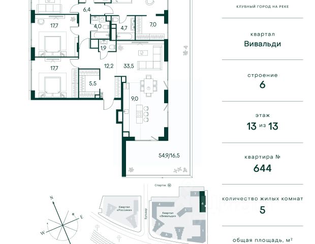 Клубный город на реке Primavera — это современный жилой комплекс премиум-класса, расположенный на первой береговой линии Москвы-реки в экологически чистом районе Покровское-Стрешнево. Под панорамными окнами квартир находится собственный экопарк с продуманной сетью прогулочных дорожек и современными детскими и спортивными площадками. За парком расположена набережная с собственным пляжем и зонами для отдыха. Клубный город на реке Primavera предлагает широкий выбор планировок для различных жизненных сценариев: от просторных однокомнатных квартир до пентхаусов и жилых помещений с террасами и патио. Выберите из 120 вариантов эргономичных планировок стандартного и евроформата. Из каждой квартиры открываются красивые виды на реку с углом обзора в 270 градусов. Дизайнерские лобби предлагают панорамный обзор на благоустроенный двор. Высокие потолки в 6 метров и качественная отделка создают атмосферу, схожую с пятизвездочными отелями. В Primavera есть всё необходимое для комфортной жизни в мегаполисе: • Образование для детей в шаговой доступности: 4 школы, 8 детских садов и развивающие центры с кружками и секциями. • Удобства на расстоянии приятной прогулки: супермаркеты, кафе, рестораны с верандами, салоны красоты, аптеки и многофункциональный центр для шоппинга и развлечений. • Умный дом: автоматизированное бесконтактное управление основными системами доступа и безопасности через мобильное приложение. Клубный город на реке Primavera выгодно сочетает комфорт городской жизни с близостью к природе. Живите в месте, где все создано для вашего удобства! Продам 5-комнатную квартиру от застройщика рядом с метро Спартак.
