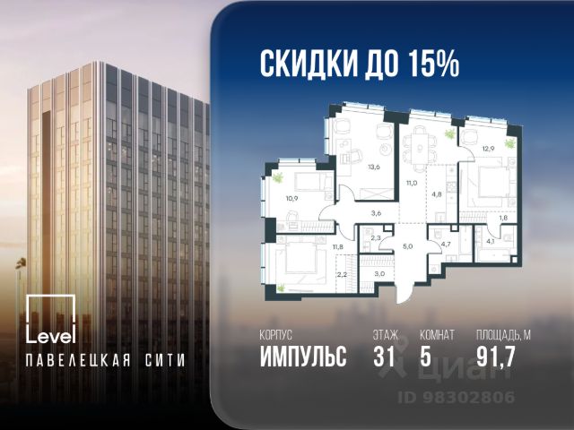 Цена указана с учётом скидки при 100%-й оплате, несубсидированной ипотеке, рассрочке (кроме программы "Рассрочка 0%"). В северной части района Печатники продается многокомнатная квартира площадью 113.00 кв.м без отделки. Квартира расположена на 68 этаже 68-этажного корпуса 3 в жилом комплексе комфорт-класса Level Южнопортовая (компания Level Group/Левел групп). Отличная транспортная доступность: - 10 мин. пешком до станции метро "Кожуховская"; - 20 мин. пешком до станции МЦК "Дубровка"; - 3 мин. на авто до ТТК; - 13 мин. на авто до Садового кольца; - 15 мин. на авто до Бульварного кольца. Продуманный архитектурный проект: - авторская архитектура от бюро СПИЧ; - уникальные виды на реку, парки и достопримечательности города; - высота потолков в квартирах до 6 м; - окна высотой до 1,87 м с высоким коэффициентом сопротивления теплоотдаче. Расположение: Level Южнопортовая строится в северной части района Печатники - самой приближенной к центру. Здесь будет сформирован новый район "Южный порт", где построят крупный жилой и общественно-деловой центр, аналогичный Москва-Сити. В течение 10-12 лет в этом месте появятся не только жилые дома, но и развитая инфраструктура для жизни и работы. А еще совсем рядом находится набережная Москвы-реки, где планируется построить причалы для речных трамвайчиков и канатную дорогу. Уже сейчас вокруг жилого комплекса работают десятки магазинов и торговых центров, рядом расположено 6 парков, среди которых музей-заповедник "Коломенское". В 10 минутах пешком - 2 муниципальных и 2 частных детских сада, 7 общеобразовательных школ. Внутренняя инфраструктура: Для отдыха жителей в каждом корпусе предусмотрено лобби, оснащенное местами для отдыха, гостевыми санузлами и лапомойками, а в отдельных корпусах - камином. За счёт больших окон и высоких потолков пространства будут наполнены воздухом и светом. На первых этажах жилого комплекса откроются магазины, салоны красоты, фитнес-центр. Для детей строятся собственные детский сад и школа. Благоустройство: Внутренний двор комплекса разработан совместно с бюро GAFA. Основная идея - создать аналог Центрального парка в Нью-Йорке, гармонично сочетая высотные здания и большое изолированное парковое пространство. Вся площадь двора-парка будет огорожена и составит более 2 га, из которых 45% - озеленение. Одним из самых важных ландшафтных элементов здесь станет небольшая речка, наполняющаяся во время дождя. Вокруг неё появится сеть из островов, внутри которых расположатся тематические зоны спорта и отдыха. Технологии и инженерия: - автоматическая передача в управляющую компанию показаний квартирных счётчиков; - телефонная связь, телевидение и интернет на базе оптической мультисервисной сети; - гостевой Wi-Fi в лобби и на территории двора; - единый ключ доступа для входа на территорию комплекса.