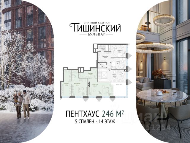 Премиум-апартаменты со скидкой 15% (указанная цена уже включает скидку) Один из последних эксклюзивных апартаментов в жилом комплексе Neva Towers в Москва-Сити. Беспроцентная рассрочка от застройщика от 3 до 24 месяцев. Есть возможность возврата НДС Предлагается двухуровневый пентхаус с террасой без отделки в сданном и заселённом комплексе. Можно установить собственный лифт Площадь — 593,3 м², 66 этаж, Окна выходят на три стороны света. Neva Towers — единственный жилой комплекс в Москва-Сити с собственным парком на уровне 4 этажа. Инфраструктура парка включает: • открытый бассейн • шезлонги и лаунж-зоны • детскую площадку • прогулочные и спортивные зоны (йога, места для отдыха и загара, открытая воркаут зона и др.) Расположен на 1-м Красногвардейском проезде. Комплекс имеет: • огороженную и приватную территорию • уникальный сквозной проезд к башням — без пропусков и препятствий • зону быстрой посадки/высадки • многоуровневый паркинг для жителей и гостей Neva Towers полностью заселён. Комплекс предоставляет инфраструктуру уровня премиального отеля: • фитнес-клуб с бассейном и открытым джакузи • SPA-зоны, закрытый кинозал • рестораны и кафе (Кофемания, Ivanka, TimeLess, Bluefin и др.) • химчистка, аптека, private bank, салон красоты и многое другое Готовое пространство в одном из самых престижных и инвестиционно привлекательных жилых комплексов Москвы. Остались единичные предложения. 5-комнатная квартира от застройщика в районе Пресненский в Москве.