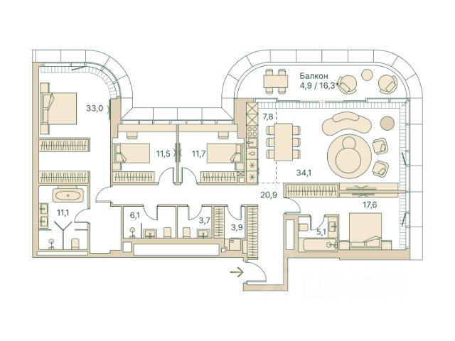 В прихожей и гостиной пол из мрамора: фоновый мрамор Crema Marfil ( -Испания), Negro Marquina ( Испания), на кухне мрамор Кот де Азур Панно (Италия), столешница на кухне серый мрамор Silver Wave (Италия), в гостиной мрамор Палисандро Реале (Италия), мрамор Bronze Amani (Италия), в ванной белый мрамор Калаката (Италия), черный мрамор Сахара Нуар (Италия), оникс Tropical, и серый мрамор Cippolo (Италия).