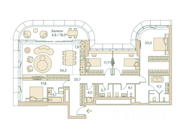 • ✓ В базе Циан 25 5-комнатных квартир с отделкой в округе ЗАО в Москве.