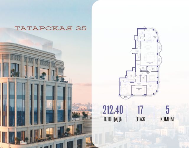 Скидка до 15% действует до 25.12.2025 г. при 100% оплате и не субсидированной ипотеке. Продается просторная квартира площадью 320.50 м2 в жилом комплексе ТАТАРСКАЯ, 35. Квартира находится в 1 секции корпуса 1. Этаж 15-й из 20. Квартира без чистовой отделки, с просторной кухней 61.20 м2. Жилая площадь 134.00 м2. Высота потолка от 3.50. ТАТАРСКАЯ, 35 - новая архитектурная доминанта Замоскворечья, достопримечательность на фотопанорамах исторического центра Москвы. Элитный дом, созданный для тех, кто умеет смотреть далеко вперед, мыслить масштабно и воплощать собственный сценарий жизни. Вдохновляющие прогулки по променаду набережной, в уютных переулках, в парке "Зарядье", в Михайловском саду и Репинском сквере. Наслаждение высоким искусством в Третьяковской галерее, Доме Музыки, театральном музее им. А.А. Бахрушина, театре на Малой Ордынке. За окнами - Кремль, высотка на Котельнической, панорамы Замоскворечья и острова Балчуг, огни Садового кольца. Собственные спорт-румы, детская, репетиторская, бьюти-пространства, деловое пространство с коворкингом, переговорной и сигарной. Собственный трехуровневый фитнесс-центр с бассейном, тренажерным залом, сауной, хаммамом, массажным кабинетом. Площадь двора - 1,8 га, половина территории покрыта деревьями, кустарниками и лужайками. Дом расположен внутри Садового кольца - отсюда в считанные минуты можно добраться до важнейших мест столицы: достопримечательностей и парков, театров и ресторанов, деловых и административных центров. 7 минут до Кремля на автомобиле, 15 минут до Третьяковской галереи и 8 минут до Садового кольца пешком. Планировочные решения и визуализации предварительны, возможны изменения. Продается 5-комнатная квартира первичка в районе Замоскворечье в Москве.