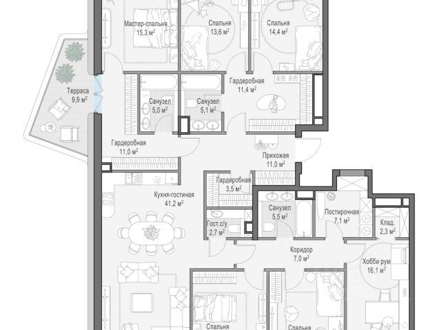 Квартиры премиум-класса в жилом комплексе SLAVA у м. "Белорусская" от застройщика. В продаже 5-комнатная квартира площадью 201 м² на 3-м этаже корпуса D. Новый современный жилой комплекс премиум-класса SLAVA расположен в той части центра, где традиция соединяется с прогрессивными городскими тенденциями. Здесь историческая Москва встречается с передовым миром. Популярные театры и старинные церкви соседствуют с современным деловым кварталом и гастрономическим кластером Депо. SLAVA находится всего в 5 мин. пешком от м. "Белорусская", по-новому открывая Ленинградский проспект. Проект был разработан легендарным архитектором Хельмутом Яном, основателем чикагского архитектурного бюро Jahn. Его работы отмечены множеством наград и реализованы в мегаполисах по всему миру. По замыслу архитекторов, жилой комплекс образуют четыре высотные башни, соединенные одноэтажным стилобатом "Хронограф". Здесь, на первом уровне, открытые и закрытые общественные пространства: небольшие сады, места для встреч и отдыха, кафе, рестораны, магазины, спортивный центр и даже выставочное пространство. Важнейшей особенностью пространства является его всесезонность: благодаря правильной организации, ландшафтному дизайну, инженерной инфраструктуре здесь будет уютно и в жару, и в xолод, и в ненастье. На втором уровне стилобата расположится приватный парк для жильцов. Особенности комплекса: - Идеальное расположение в престижной части Москвы (10 мин. от Кремля) - Панорамное остекление - Подземный паркинг с дизайнерской отделкой - Современные инженерные системы - Продуманная внутренняя инфраструктура - Приватный сад 7700 кв.м. Расположение комплекса: - 5 минут до станции метро "Белорусская" - 3 минуты до ТТК - 8 минут до "Садового кольца" Компания MR предлагает своим клиентам специальные условия приобретения квартир в рамках программ ипотечного кредитования от банков-партнеров.